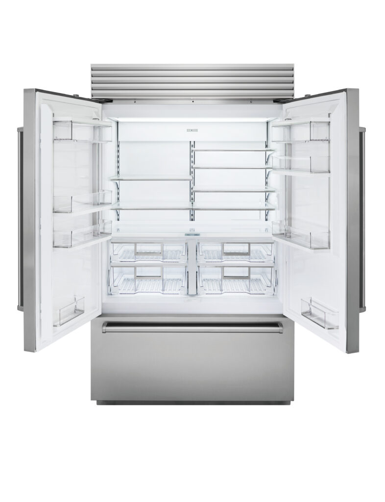 This stainless-steel refrigerator/freezer with French doors and an internal water dispenser is the wider 'brother' of the ICBCL4250UFDID model.