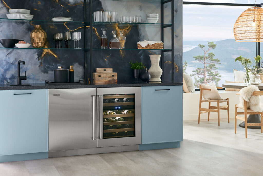 Undercounter refrigerator with closed door on which your own furniture panel or Sub-Zero stainless steel door panel with handle can be mounted.