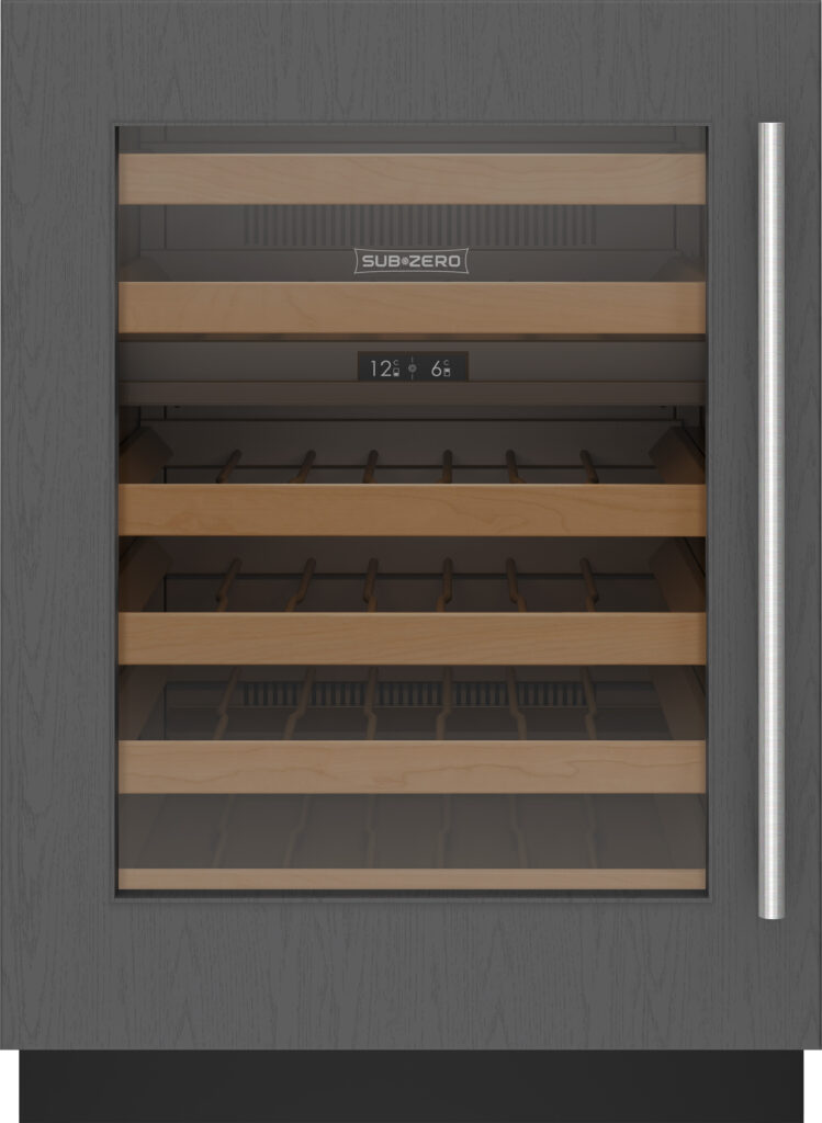 Undercounter wine storage unit. Available in stainless-steel and panel-ready models.