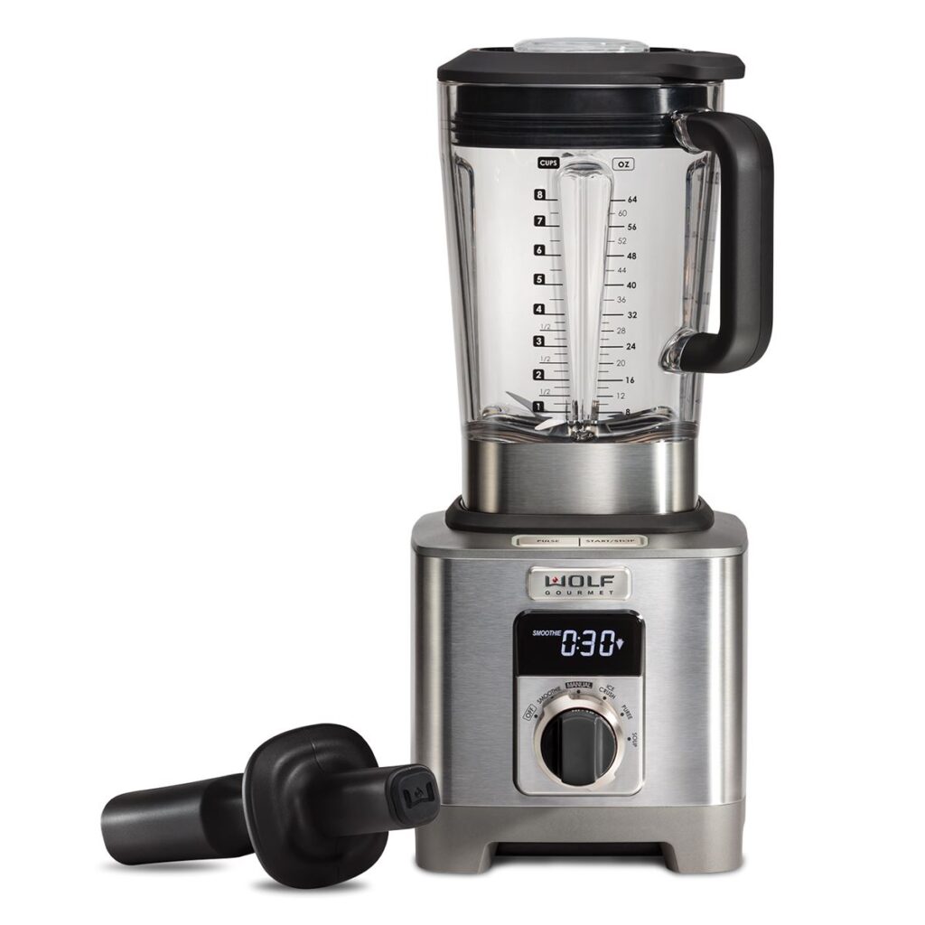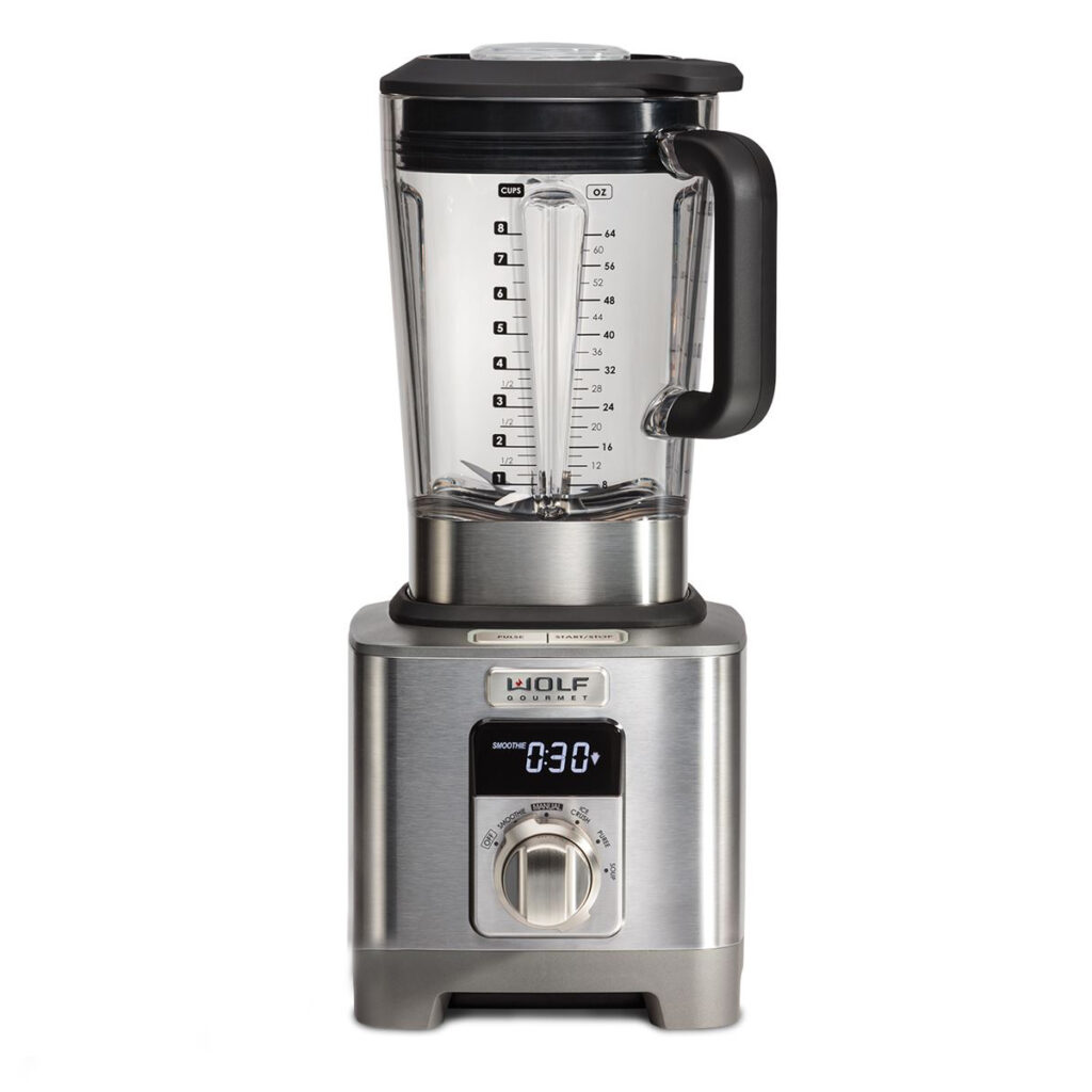 Puree sauces, heat silky soups, grind grains, and create smoothies beyond compare in the Wolf Gourmet high-performance blender.