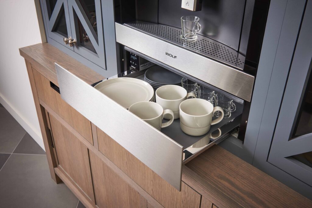 A Wolf built-in coffee system in your kitchen is a real eye-catcher. Two stylish designs are available: stainless-steel Transitional, or black Contemporary. Both designs look fantastic in combination with other Wolf cooking appliances.
