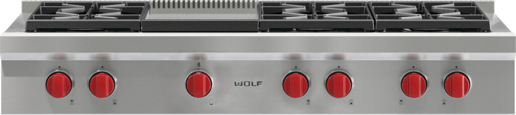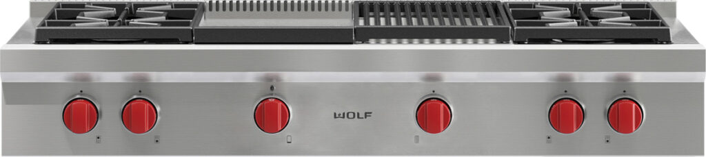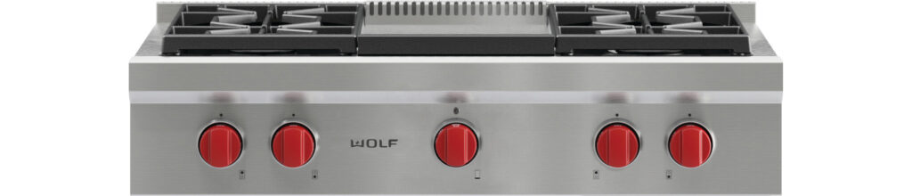 Whichever size and functionalities you choose, all our sealed burner rangetops are fitted with Wolf’s characteristic robust knobs and finished in sturdy stainless steel.